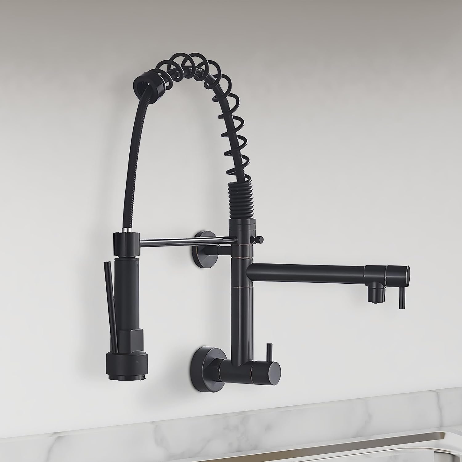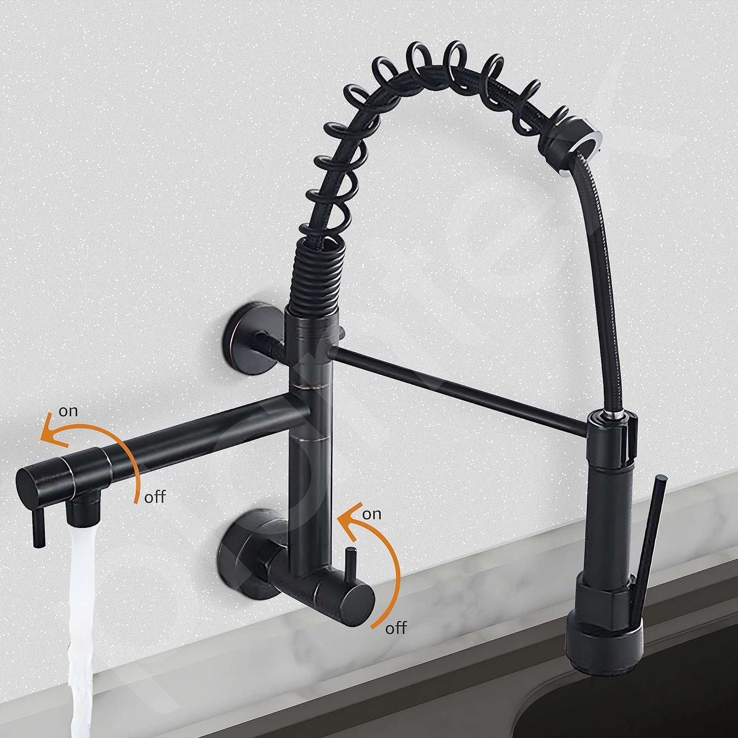- DUAL FUNCTION: faucet with 2-way water flow mode and pre-rinse sprayer provides powerful spray to rinse away food residue, also the pot filler provides an aerated stream to quickly fill large pots and pans, moreover the amazing thing is that the sprayer and pot filler can work at the same time which will be a great help for you to wash vegetables, fruits or do other housework in two sinks.